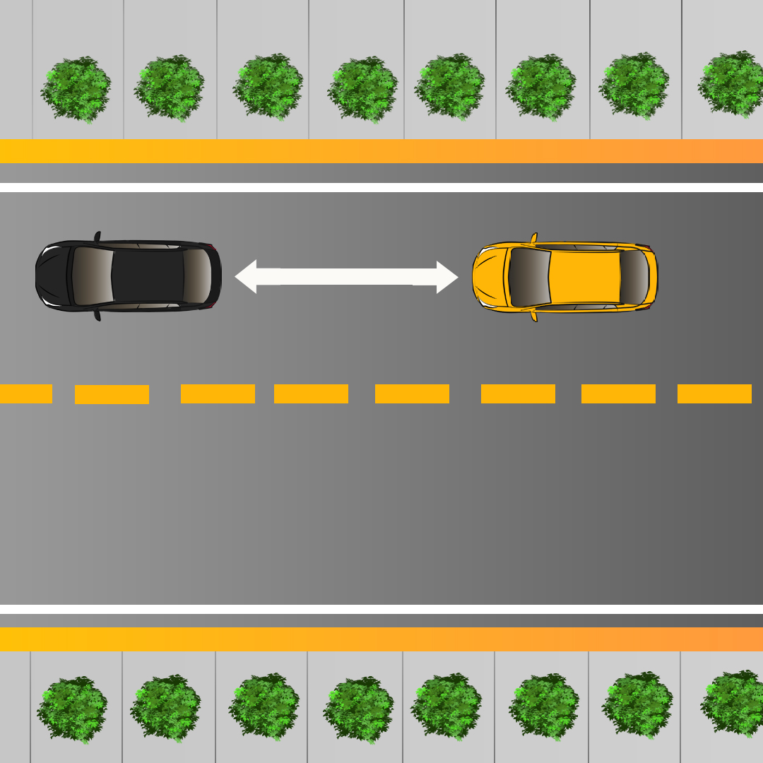 If you have your high beams on at night, how close are you allowed to drive to another car before dimming them? |