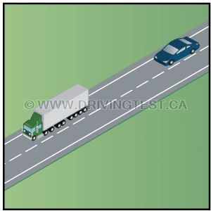 What should you do if you driving behind a truck and realize you can't see their side view mirrors |